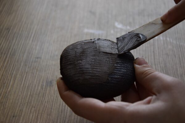 Caroline Jamous est artiste laqueur spécialisée en laque végétale, matière utilisée en Asie depuis près de huit millénaires. Sa démarche artistique s’oriente autour de la création d’objets dont la poésie discrète est perçue au détour des gestes du quotidien. Elle s’est notamment tournée vers l’art sacré, en réalisant une série d’objets de prière. « J’ai souhaité créer une gamme d’objets laqués à manipuler, basés sur le principe des dizainiers (petits chapelets), qui appellent à revenir par le rituel, au recueillement et à la prière. De la matière à l’esprit, ces objets qui tiennent humblement dans le creux de la main ont vocation à tendre vers l’incommensurable ».