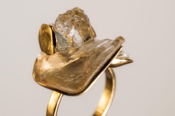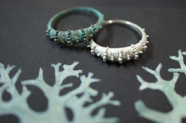 Diplômée de l’École Boulle en ciselure, Lucille Grandchamp crée des bijoux aux structures organiques. Elle façonne le métal pour composer des pièces uniques en s’inspirant de la richesse plastique qu’offrent la ciselure et d’autres techniques telles que l’émail ou la granulation. Elle interroge par le dessin l’architecture du vivant et cherche à retranscrire son imaginaire botanique sur le métal. En parallèle, elle développe un travail autour des mobiles et du concept d’équilibre en s’intéressant au rapport ludique de l’humain à l’objet.
