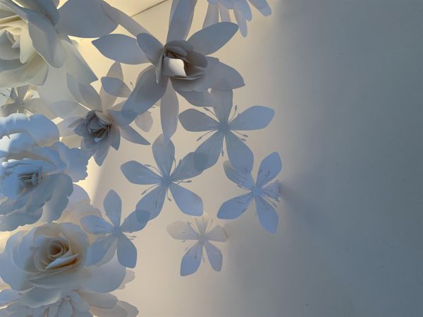 Creation and production of paper installations inspired by the plant and poetic world. My paper creations play with space, the architecture of a place in the form of wall installations or suspensions. The papers are cut, folded and hand-patinated with gold leaf. Collaboration with luxury houses