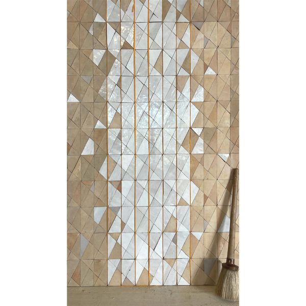 It is in revelation through a terracotta tile, omnipresent in the Maroccan heritage, that I shape myself. Zellige has been my main vector of expression for 20 years to create geometric and chromatic pictorial art works and thus bring new trajectories to this ancestral art while preserving the richness of a gesture