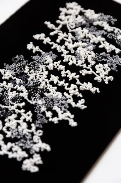 I'm engaged in an artistic quest, in which the "tiny" is the starting point for exploring materials and laying the foundations of my graphic vocabulary. Using kilometers of threads, I develop an intimate language, combining intuition, technical know-how and a love work that takes time.