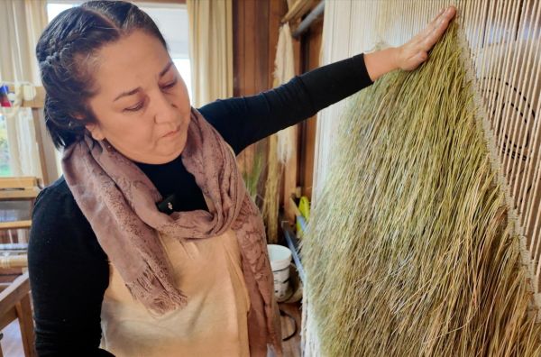 A Chilean weaver from Purranque, Los Lagos Region, her work blends traditional Mapuche techniques with innovations in pedal looms and tapestry. Rooted in the cultural landscape of southern Chile, her large-format tapestries narrate local histories while exploring new materials and approaches, preserving and redefining textile heritage.