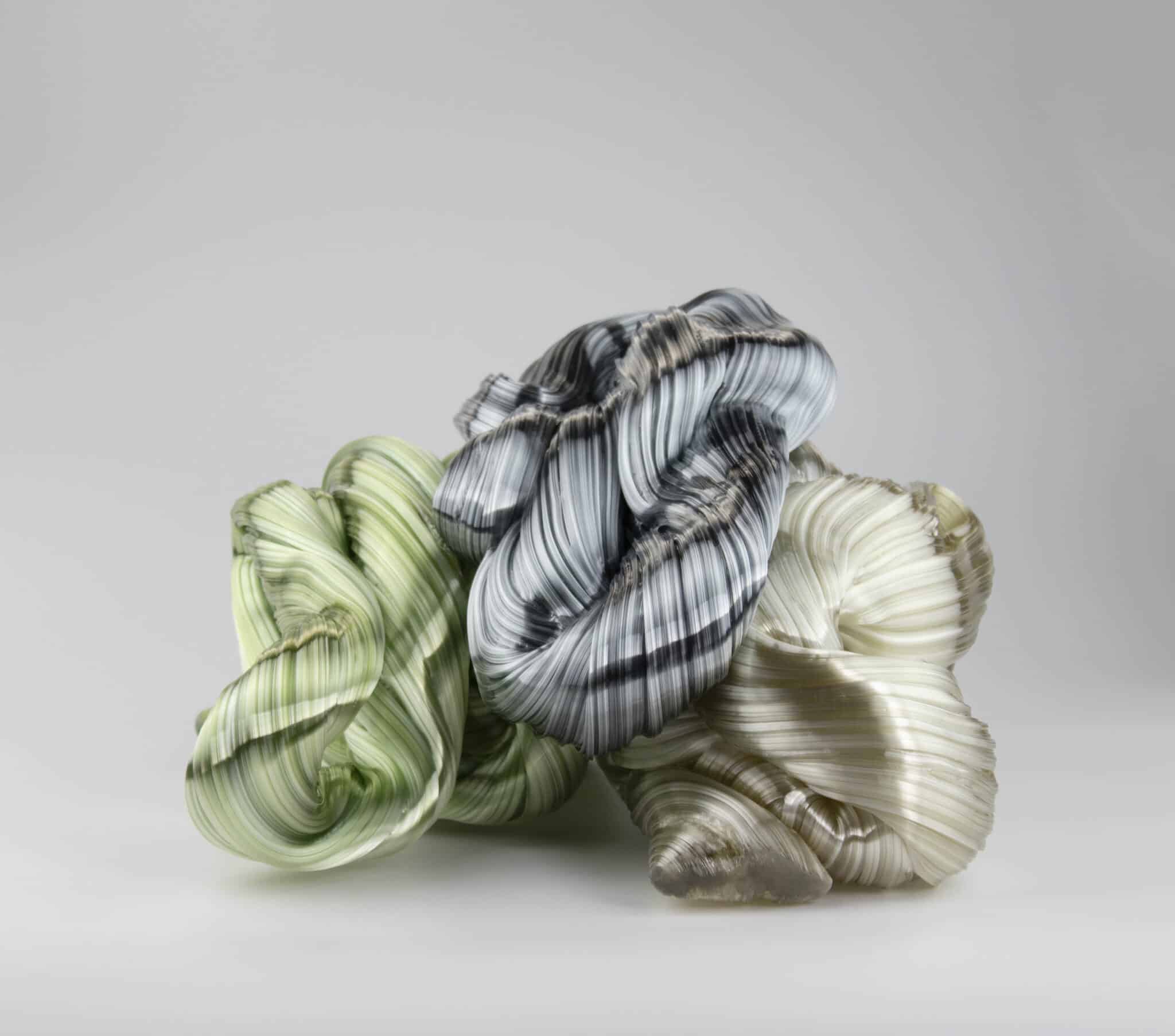 « Although made of glass and static in their final state, the objects´ playful exploration into conceived softness, reveals our flexible perceptions of the world and reminds us that things are often not as they first appear. »