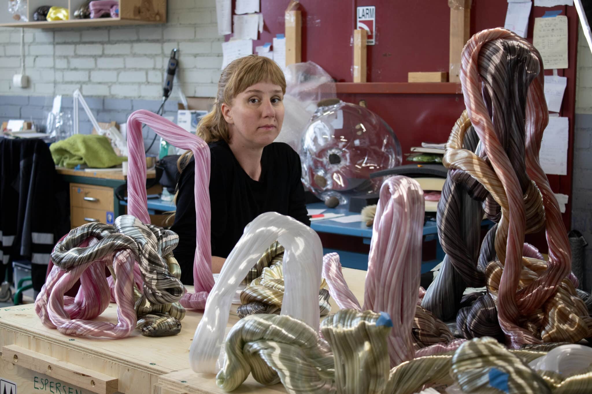I had long had an idea to test out if I could fuse several of these stretched objects directly as I was making them in the glassblowing studio. In 2021 I finally tested it for the first time – and it worked! But I had never truly believed that it would, because all my knowledge regarding fused glass told me that it would fail due to the low temperature of the annealer, which must be at 510 degrees C at all times. But I discovered that adding freshly made objects could carry just enough heat for the fuse to happen.