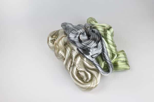 I first developed the technique of stretching and folding hot glass in 2011. Air is trapped every time I fold the glass, turning a regular solid mass of glass into many layers of thin airy strings. Air, in combination with the optical properties of glass, results in the light being reflected in multiple directions creating a shimmery effect on the surface that is unusual in glass. Also, most of my sculptures are made of primarily transparent glass, but the air within them transforms their appearance and makes them opaque.