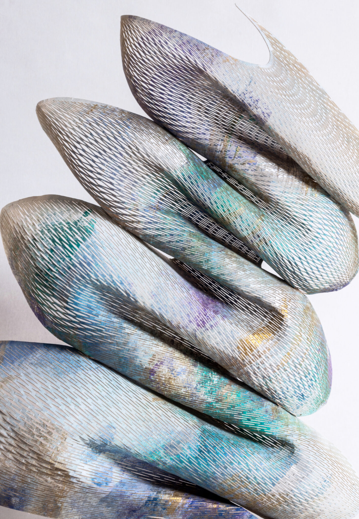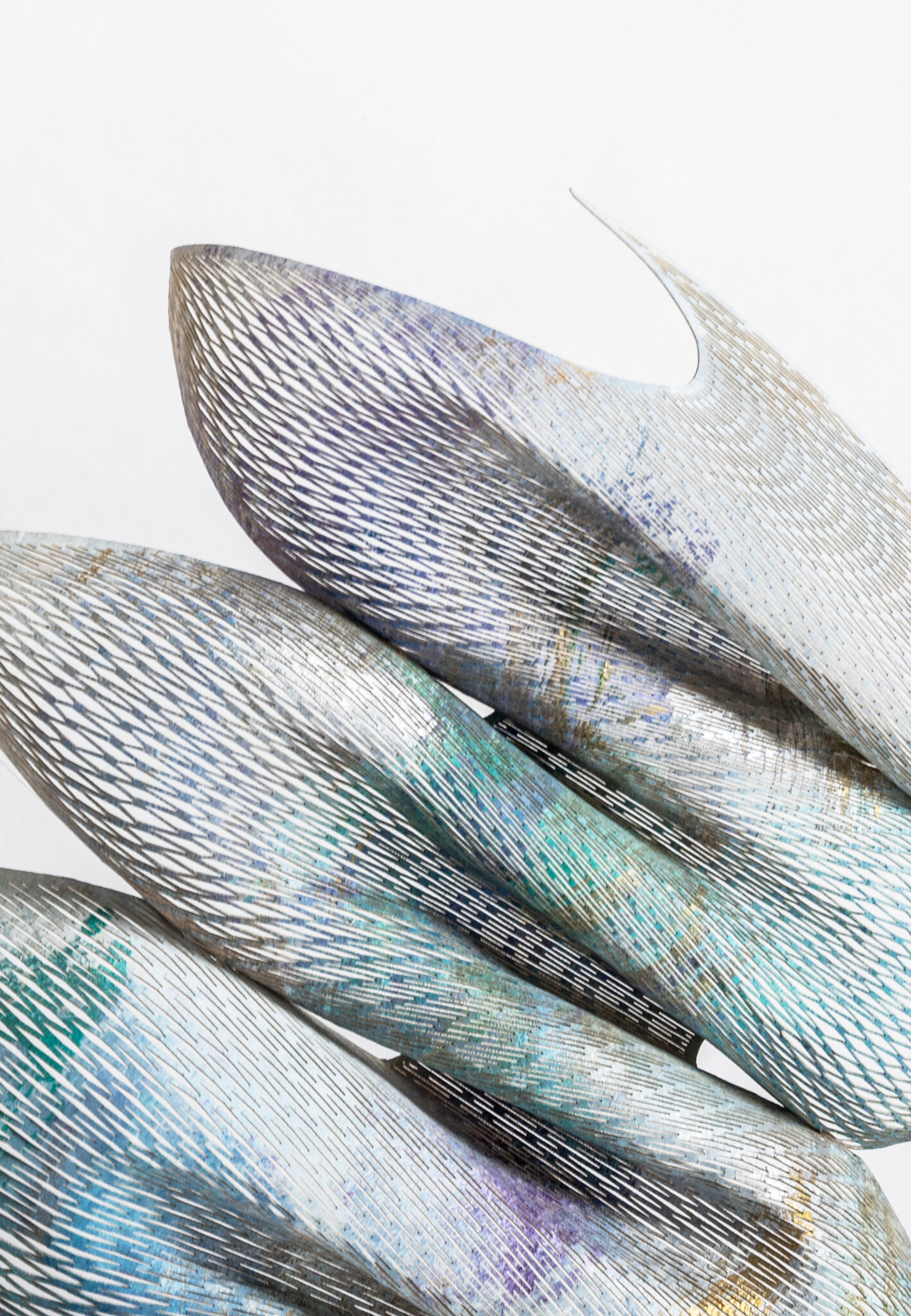 This piece, selected to embody the biennial, explores the illusionistic possibilities of the material, creating complex and intriguing works that challenge perceptions.