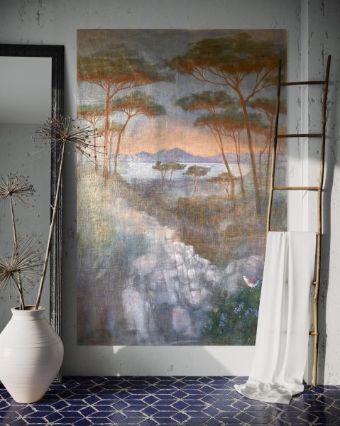 Je suis artisane textile et peintre en décors, je crée des pièces uniques, grands formats, peintes sur toile de lin. Grâce au grain de la toile et à la technique que j'utilise, mon décor semble patiné par le temps. J’ai choisis de présenter mes oeuvres suspendues sur un mur ou en rideau pour garder une certaine liberté de mouvement.