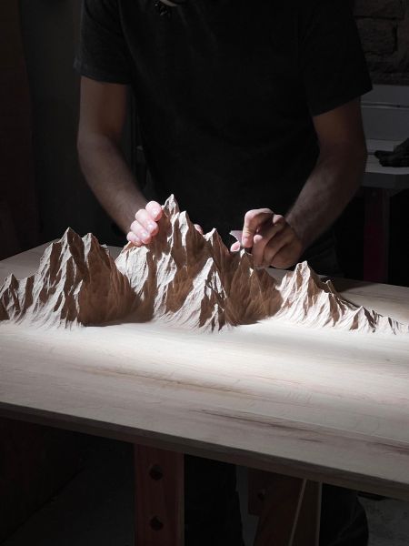 Nous sommes Benoît Vauthier et Manu Lerendu, sculpteurs et ébénistes français installés dans les Vosges. Nous développons une signature unique qui allie art et design. Nous puisons notre inspiration dans les grands espaces montagneux afin de développer un mobilier entièrement façonné à la main invitant à la rêverie et à la contemplation.
