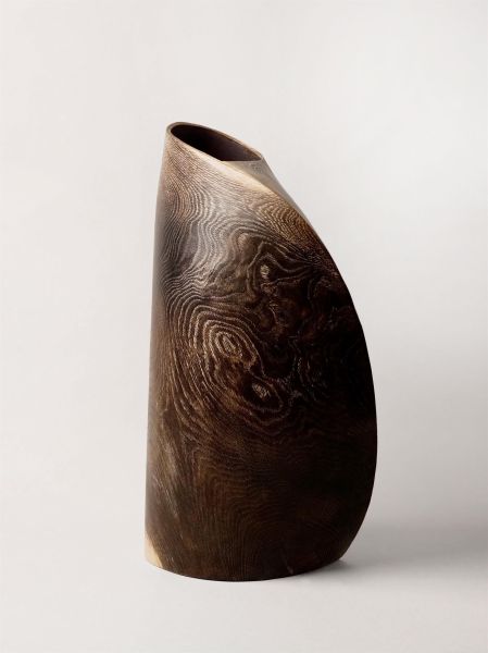 Pour mes objets uniques, j'associe un design clair au caractère archaïque du bois en utilisant diverses techniques de travail du bois, parfois avec des outils que je fabrique moi-même. Tous les objets sont creusés de parois fines. L’intérieur raffiné des œuvres contraste avec les surfaces extérieures brossées.