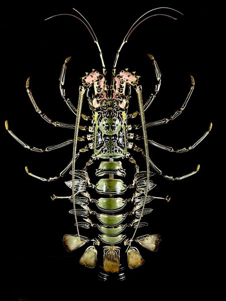 La Thanatothèque souligne l’incroyable beauté des spécimens naturels avec des pièces qui mêlent rigueur d’une présentation scientifique, techniques traditionnelles de bijouterie et sculpture. Chaque pièce, unique, relève de la «taxidermie joaillière» : entre nature, sculpture et bijou.
