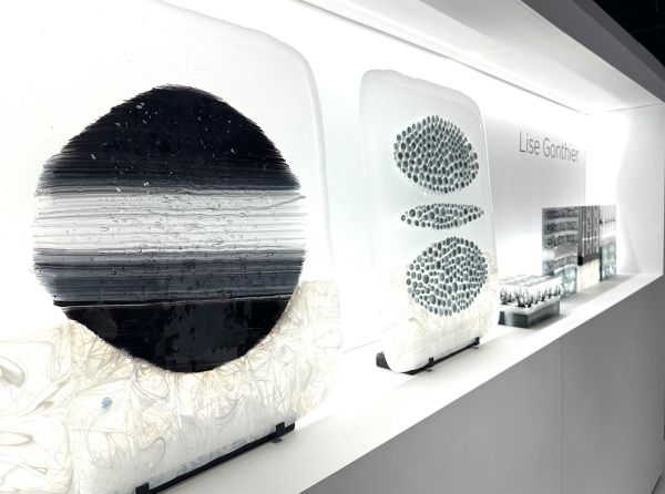 Je crée des tableaux en verre. Les éléments sont travaillés à chaud un par un, sciés, taillés et fusionnés ensemble à 850°. J'utilise le verre comme un medium pictural en jouant sur la transparence et l'opacité du verre.
