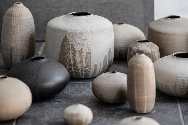 Je crée des vases en grès noirs et sables. Mon esthétique est minimaliste, légèrement rustique. La particularité de mon travail réside dans les textes en relief que je viens inscrire à main levée avec de la barbotine sous forme de bandes. Les mots reflètent mes valeurs, expériences, souvenirs. D'apparence personnels, ils appellent à l'universalité.