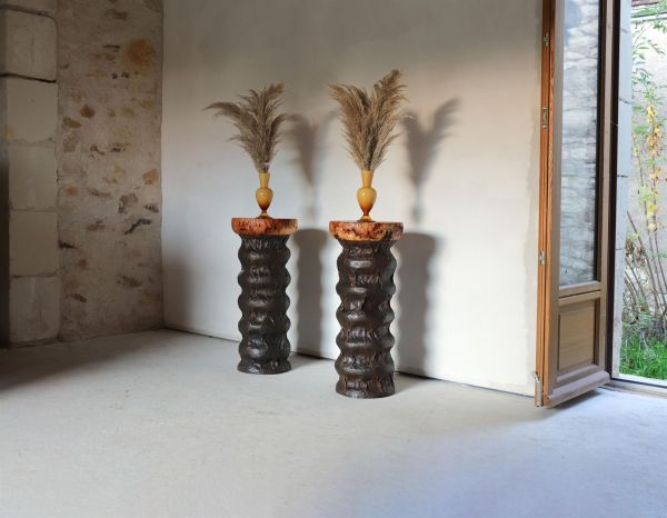 Sensible à tous les degrés de modification d’un matériau ; de son expression primaire et brute jusqu’à son façonnage complet, je décline ces variations au travers de techniques d’ébénisterie, de sculpture et de métallerie.