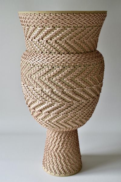 Céramiste d'Art, je crée des pièces uniques en grès ou porcelaine sur lesquelles j'interviens avec un travail de broderie et de tissage avec des lanières de cuir et des patines. Je réalise entièrement mes propres créations.