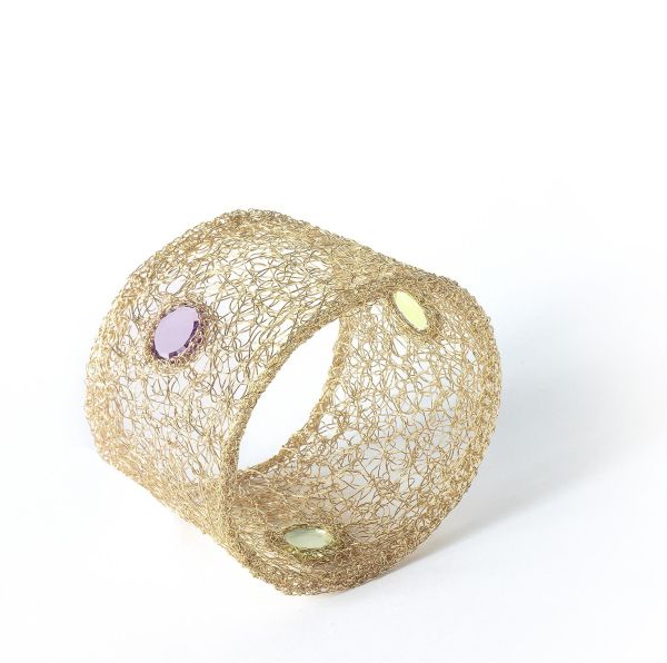 Les parures de Yannick Mur sont une rencontre fructueuse entre sa recherche d’innovation et la poésie des matériaux. D'instinct, elle conçoit une technique de broderie compressée de fil d'or ou d'argent et crée des volumes laissant filtrer la lumière. YM, des créations qui se jouent avec délicatesse des codes de la joaillerie contemporaine.