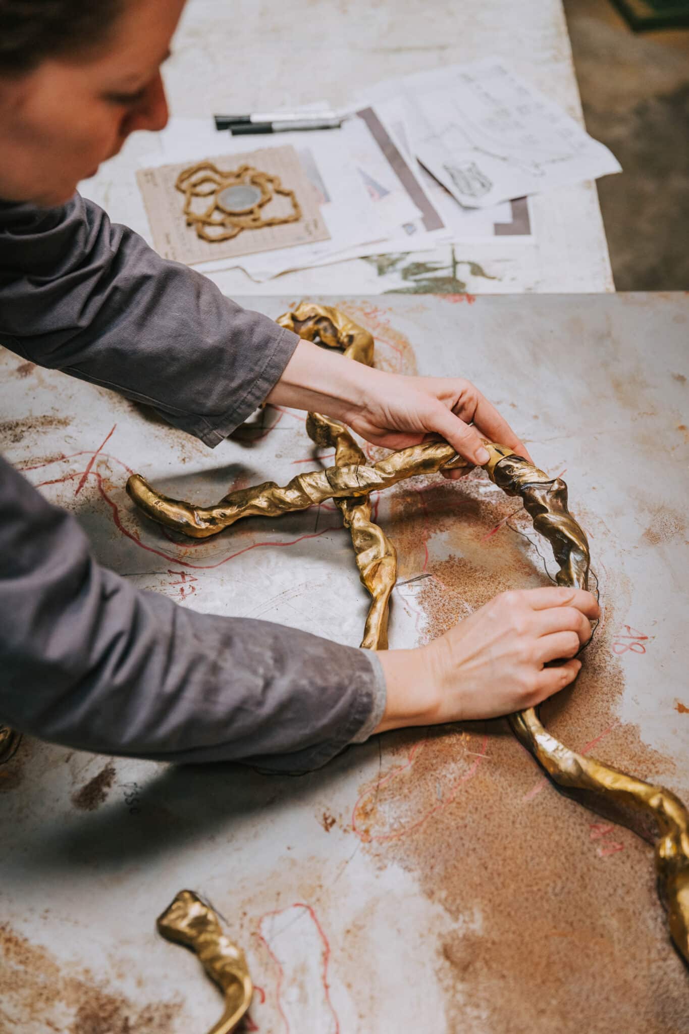 À la tête de l’Atelier Demichelis, Laura Demichelis façonne à la main des luminaires d’art et du mobilier en bronze, laiton et cuivre, alliant savoir-faire traditionnel de bronzier et esthétique contemporaine. Chaque pièce, unique ou en série limitée, explore la matière et la lumière à travers des textures inspirées de la nature – minérales, animales, végétales – pour créer une expérience visuelle et tactile. Destinées à l’architecture d’intérieur haut de gamme, ses créations sur mesure s’adressent aux décorateurs, galeristes et collectionneurs en France et à l’international. Les projets sont personnalisés : dimensions, patines, types d’éclairage sont adaptés aux besoins spécifiques de chaque client.