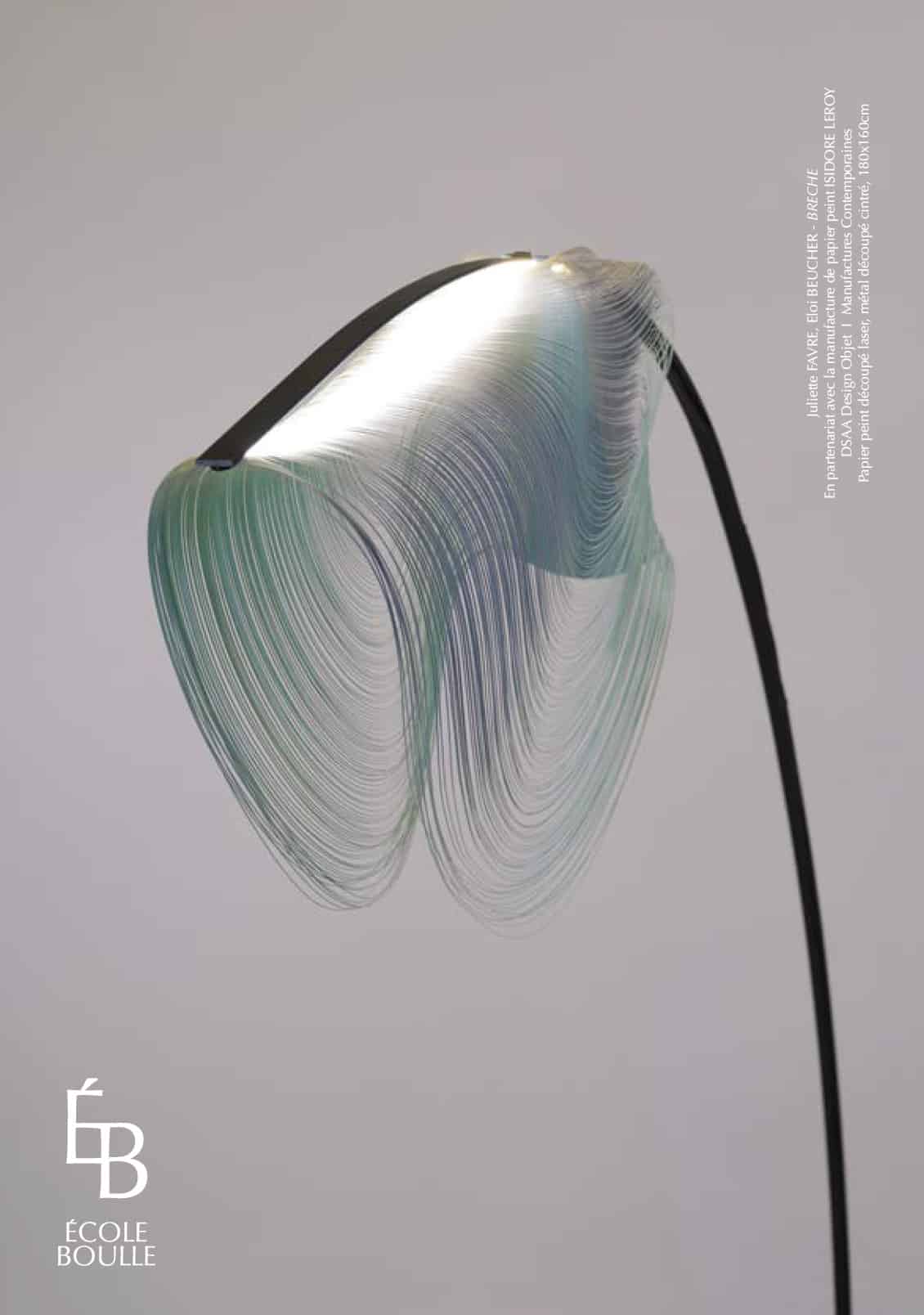 L’école Boulle, réputée pour les métiers de l’ameublement et les manufactures décoratives présente des créations qui allient design (design d’objet -manufactures contemporaines-) et savoir-faire d’exception (monture en bronze, tapisserie, ébénisterie). Chaque pièce incarne un geste précis et réfléchi au service d’une vision créative singulière et contextualisée.