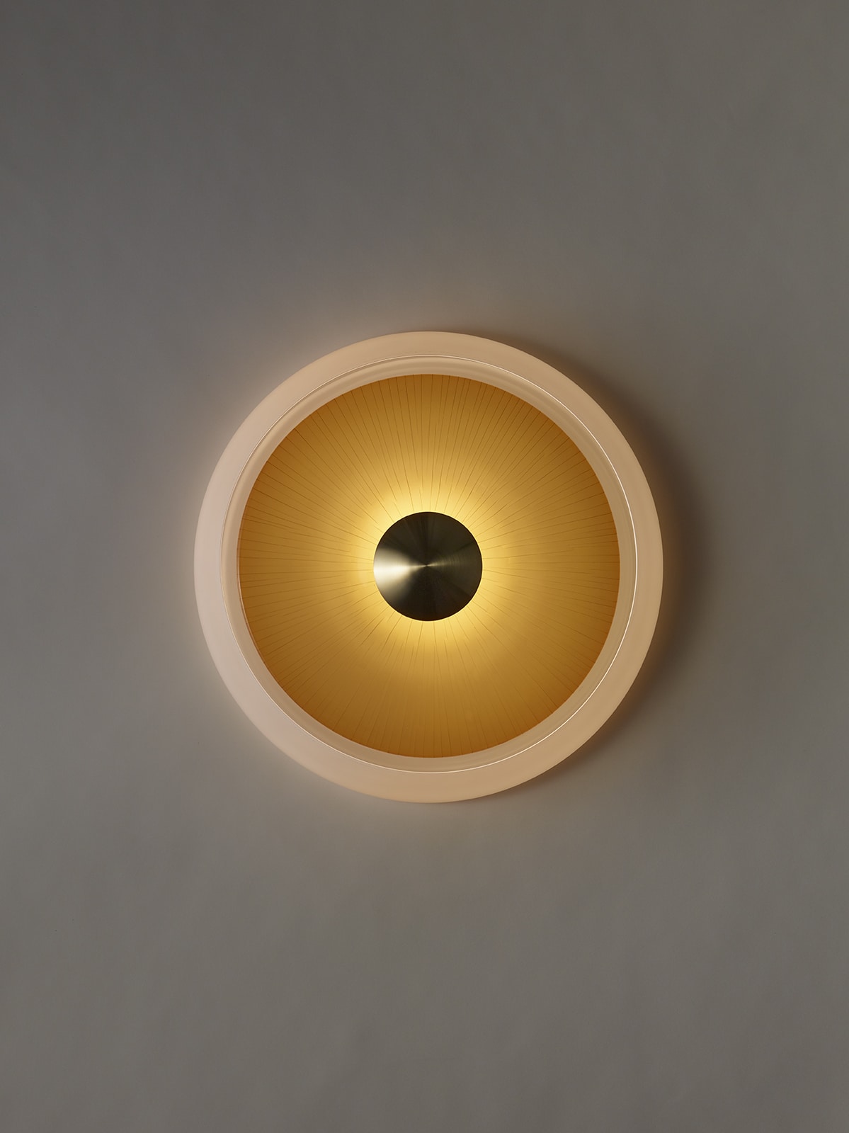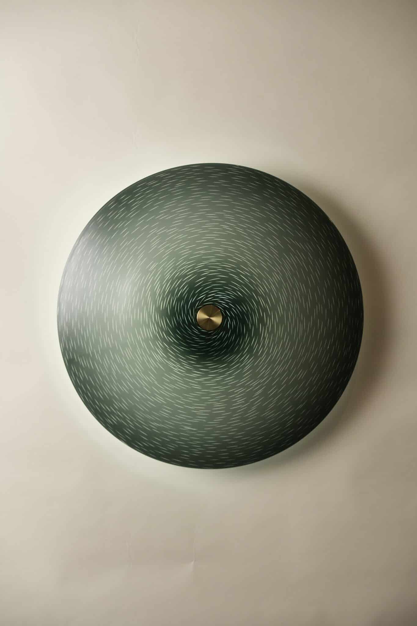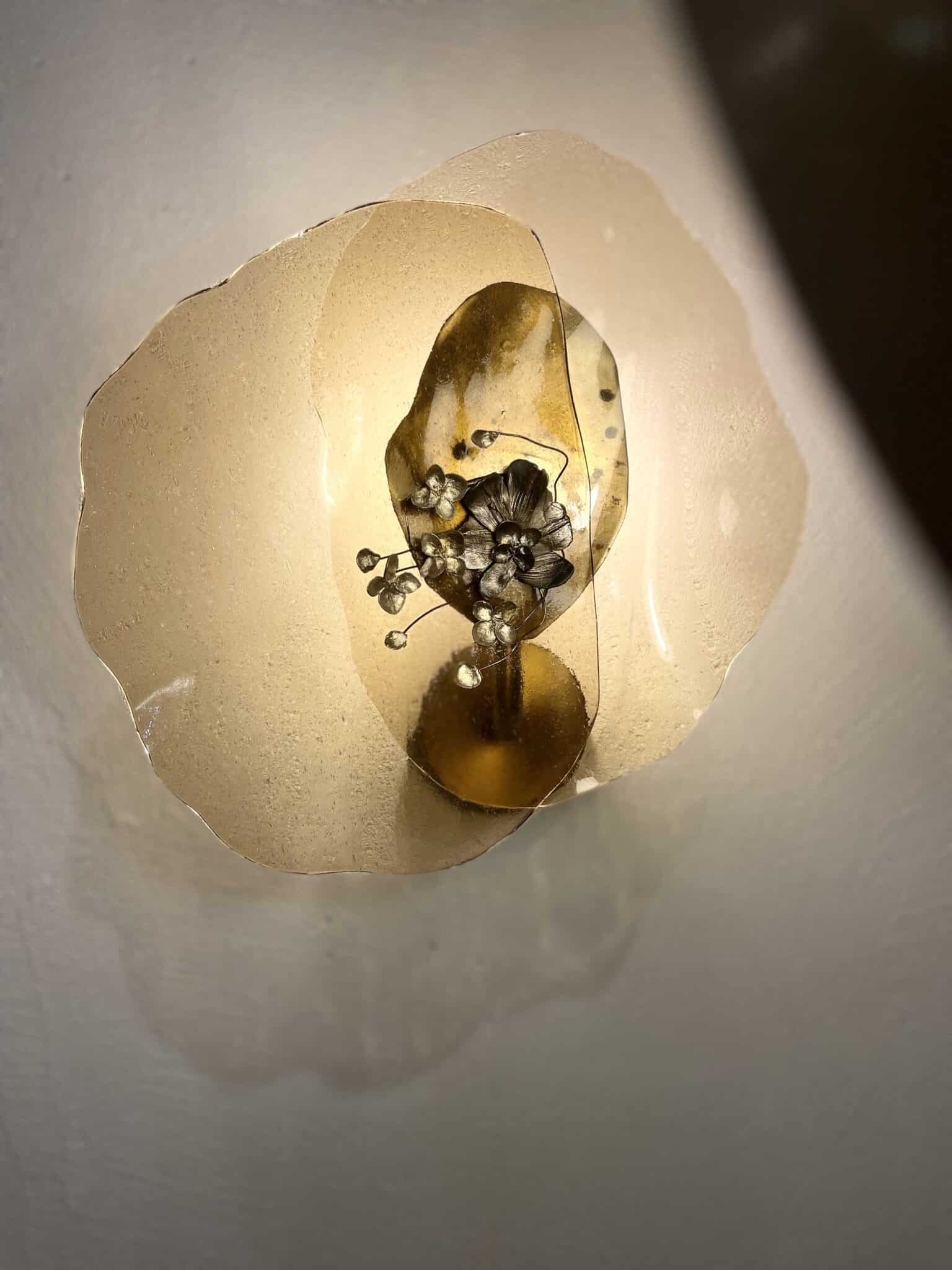 Elle associe ce verre fondu à du laiton brossé pour créer un contraste subtil entre brillance et opacité, transparence et matière. Ses compositions entrelacées, inspirées par l’univers aquatique, prennent vie sous forme de luminaires muraux et de vases décoratifs, où chaque pièce reflète un équilibre entre art, design et poésie de la matière.