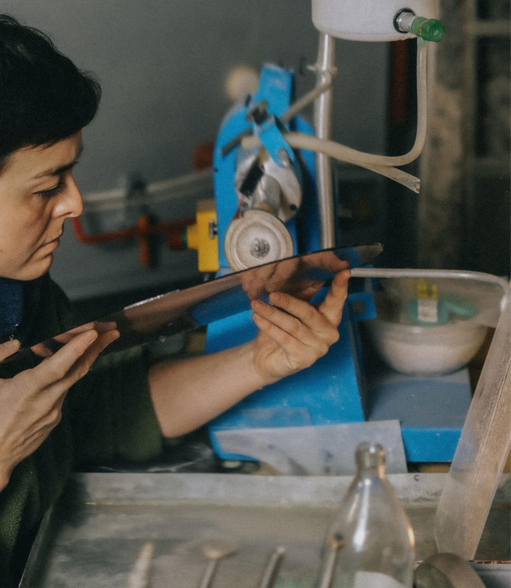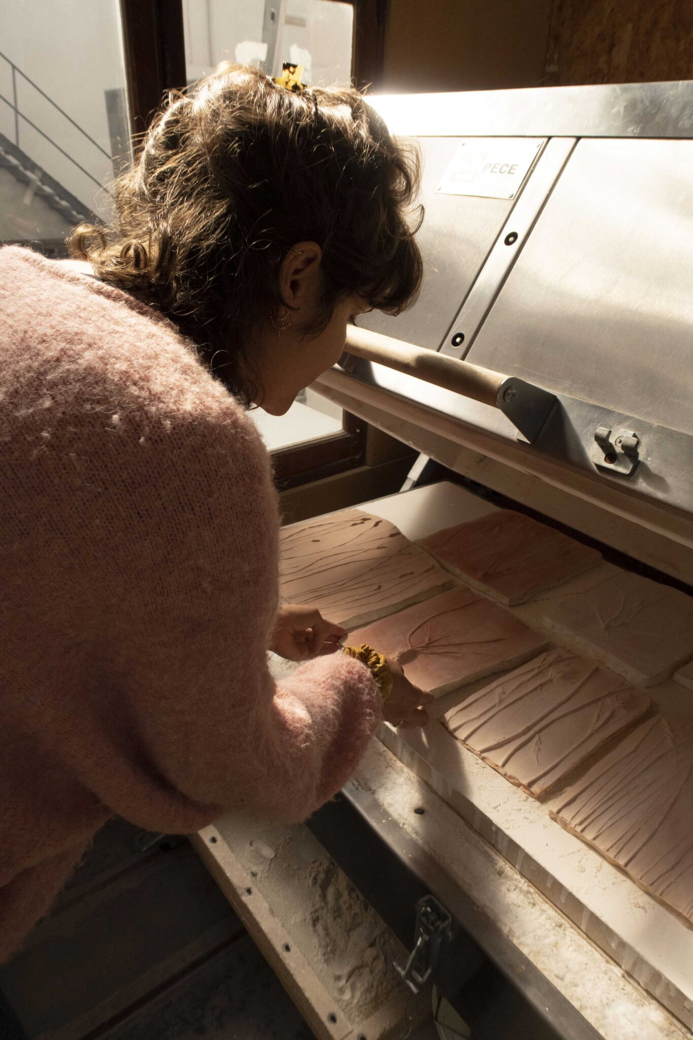 À travers le verre thermoformé et la récupération de matériaux, elle inscrit sa démarche dans une esthétique contemporaine et responsable.