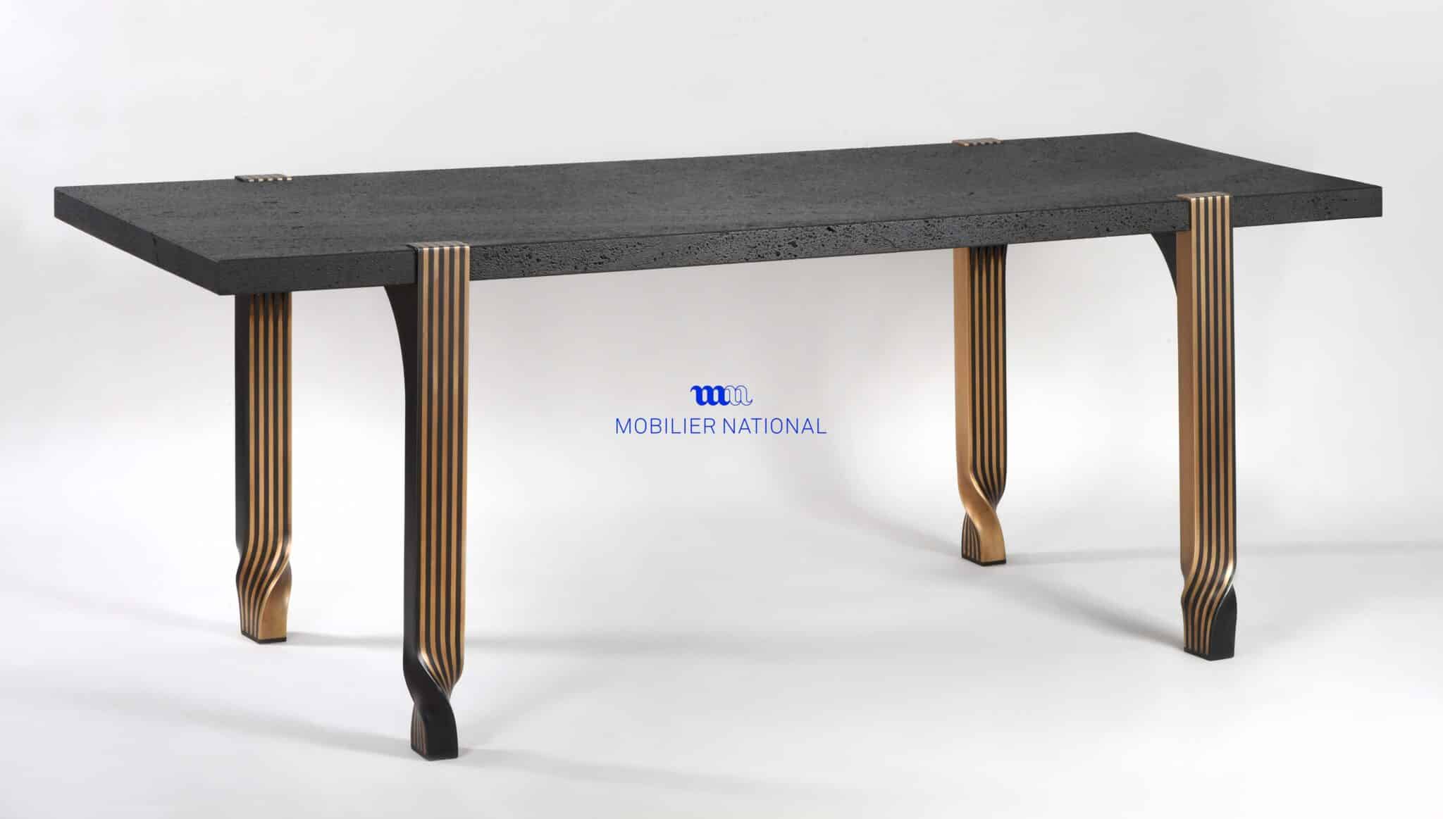 L’institution, chargée de conserver le mobilier d’État à travers les époques, a eu un coup de cœur pour l’une des créations de Bruno de Maistre : le bureau lyrique vêtu de sa robe noire. Elle en a fait l’acquisition en 2021. Le premier exemplaire de ce modèle a été présenté pour la première fois au Salon Révélations à Paris en juin 2017 et a séduit la première Dame, Madame Brigitte Macron.