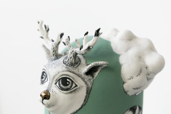 Aster Cassel se passionne pour l’évolution du vivant et les processus scientifiques, de la génétique à la robotique. Elle les réinterprète, par le biais de la porcelaine, dans des créations hybrides à la lisière entre l’onirisme et le rétro-futurisme. Son univers chimérique emprunte tout autant à Jules Verne qu’à la mythologie ou au surréalisme. Modelées ou tournées, les pièces sont enrichies d’excroissances. Le graphisme des décors appliqués au pinceau, les détails réalistes rehaussés d’or ou de métaux précieux concourent à leur caractère narratif. Toutes les créations d’Aster Cassel, bestiaire fantastique, cartographie ou gyroscope, témoignent d’un monde utopique, à moins qu’il ne soit en train d’émerger à notre insu.