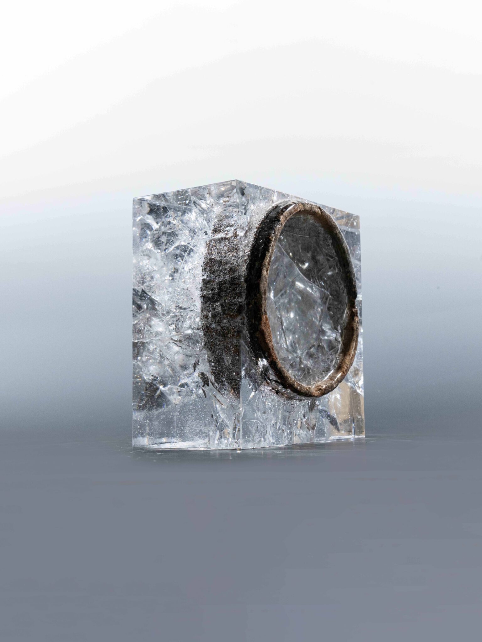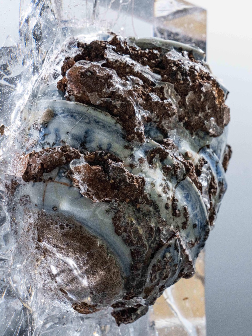 "Fusion in the Explosion" est une œuvre expérimentale combinant céramiques Song, porcelaine brisée et verre dans un même four. Elle explore les tensions entre matériaux et interroge les liens entre mémoire historique, culture et esprit contemporain. Inspirée du chaos originel de l’univers, l’œuvre évoque un équilibre entre conflit et solidification, soulignant une fugacité qui ouvre un espace d’imagination libre. Tu Juan y conjugue traditions occidentales du verre et héritage culturel chinois, créant un dialogue entre passé et modernité.