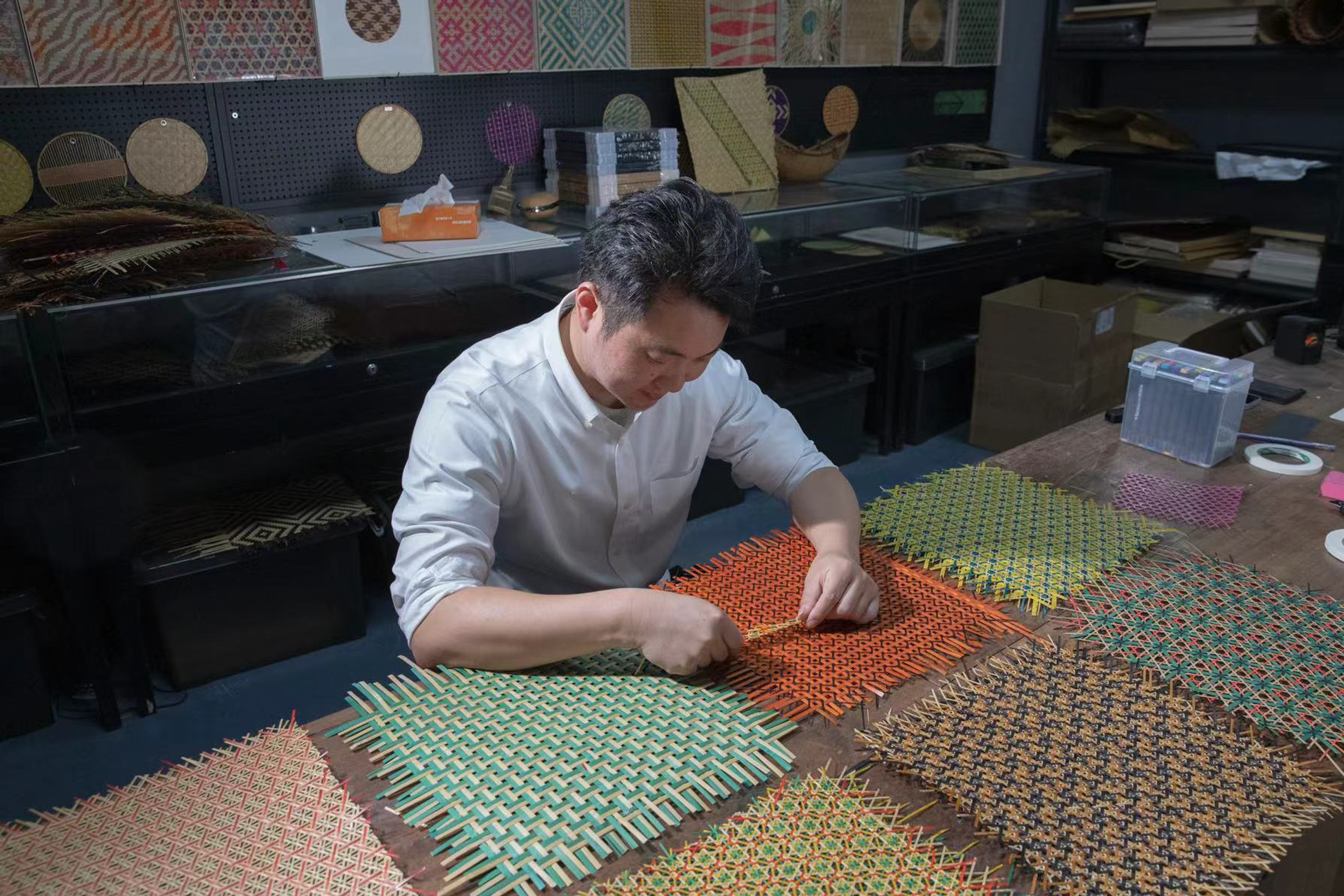 Qian Lihuai, artisan et héritier du tressage de bambou de Wuzhen, a étudié sous la direction de Hu Zhengren et remporté la médaille d'or au 6ᵉ Salon des Beaux-Arts et de l'Artisanat de Chine. Issu d'une famille d'artisans, il a grandi avec cet art et s’est engagé à le revitaliser en développant un cadre structurant pour sa transmission. En tant qu’artiste émergent sur la scène internationale, il a collaboré avec Bvlgari ou Louis Vuitton intégrant son savoir-faire à des projets prestigieux. Ses œuvres ont été exposées à la Biennale de Venise, Tokyo, Singapour et Budapest, ainsi que lors d’expositions personnelles à Shanghai et Qingdao, affirmant son rôle dans le renouveau du tressage de bambou.