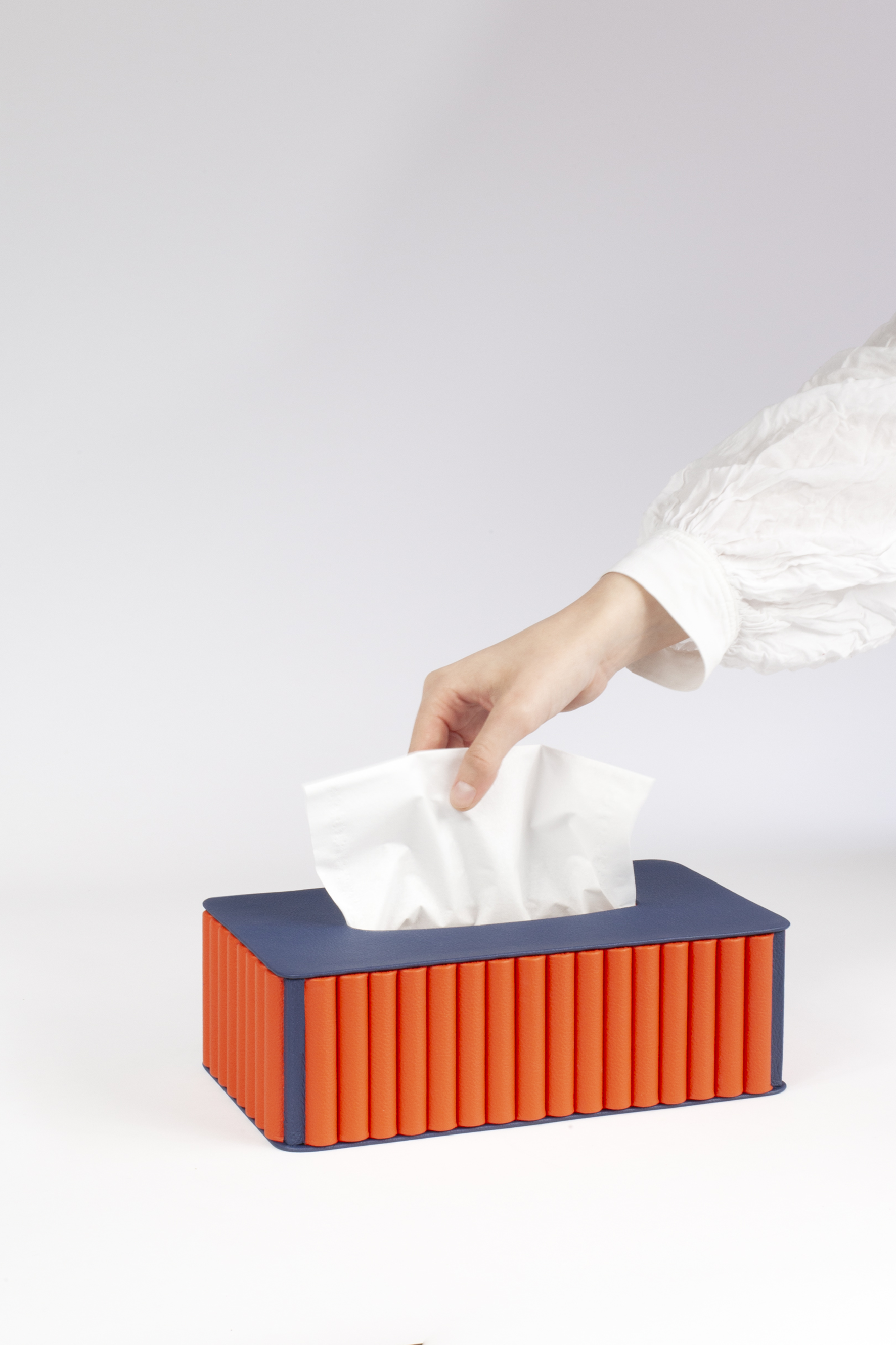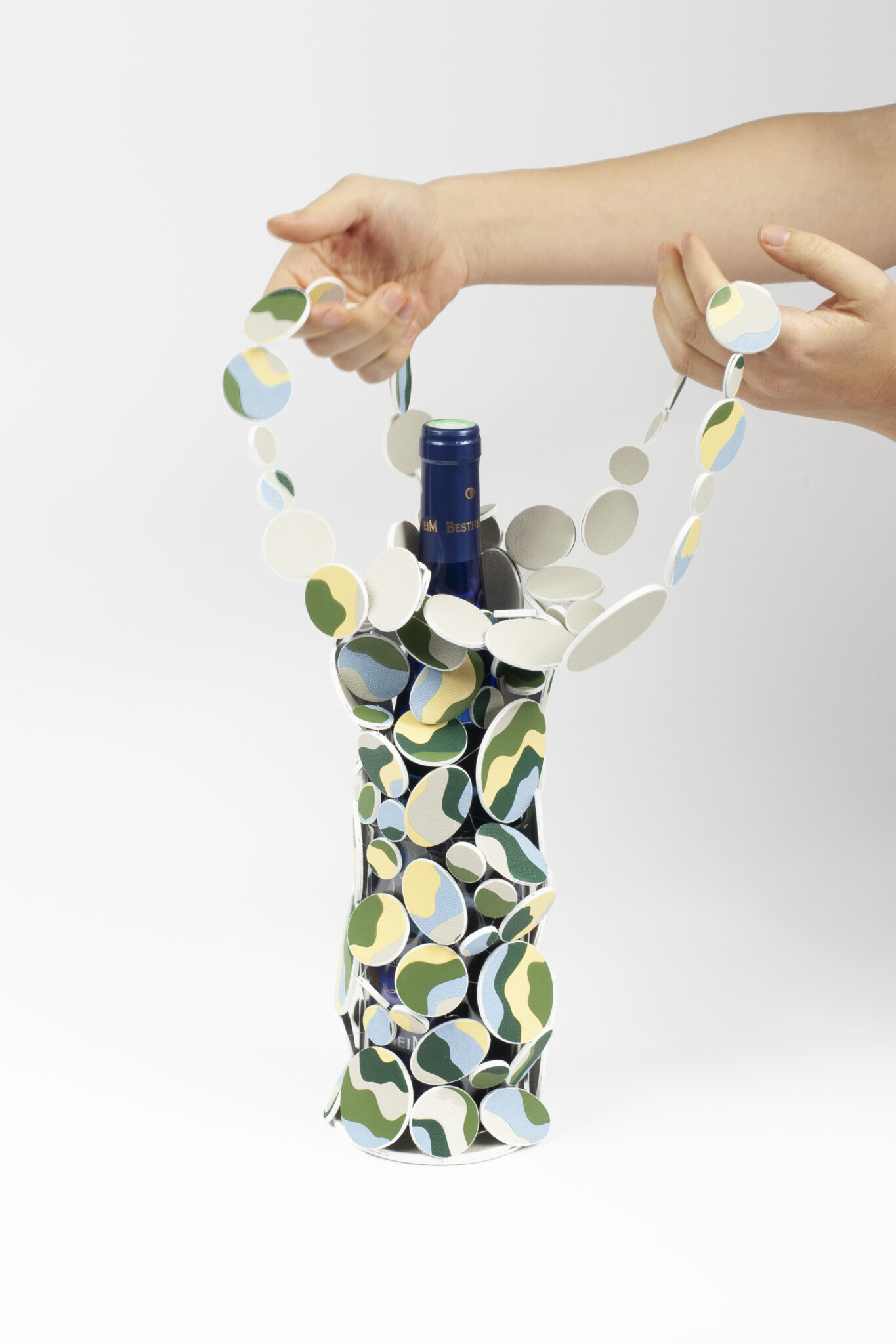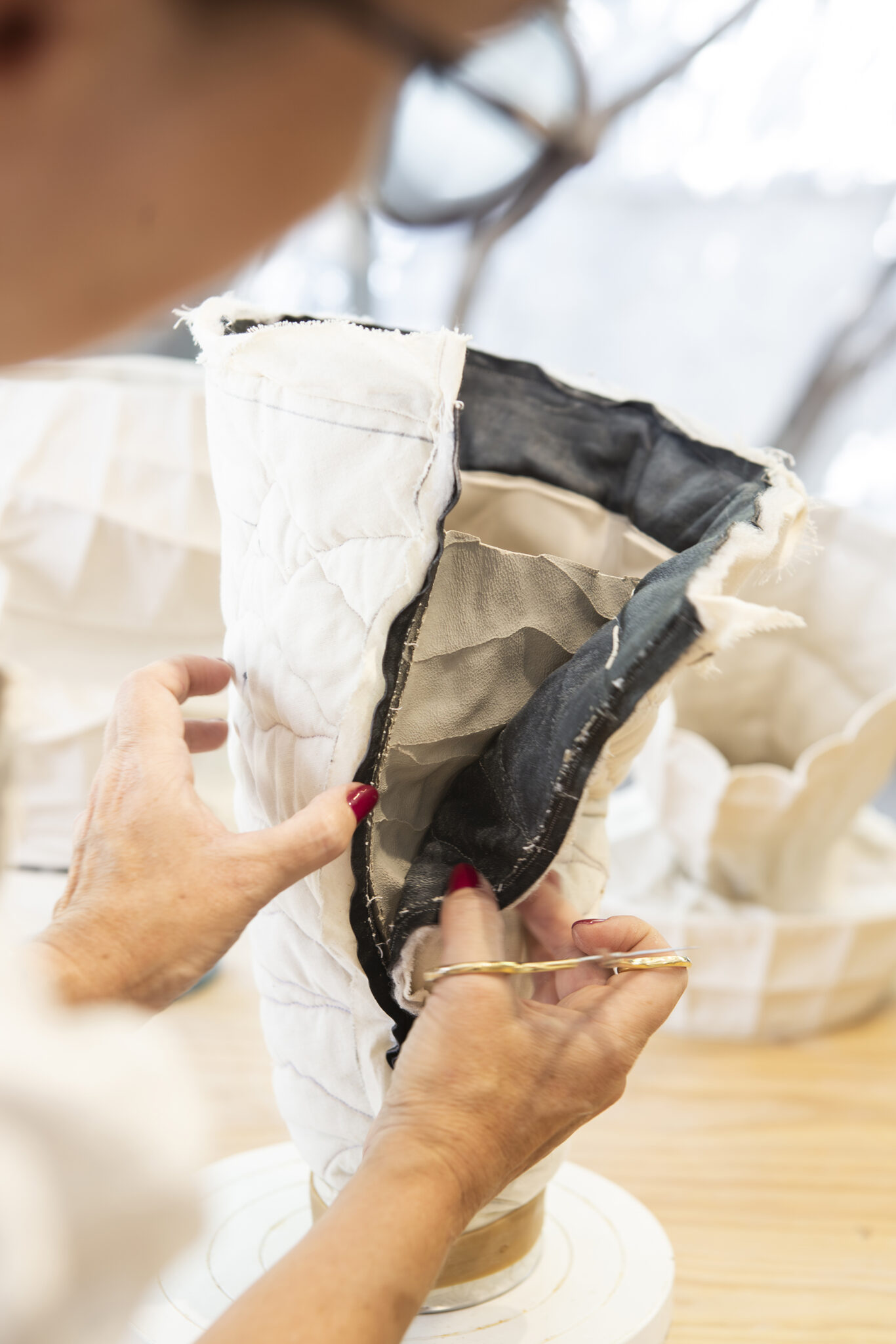 Bien qu'elle soit céramiste, la majeure partie du travail de Dita Cossio s'effectue sur une machine à coudre, un métier qui appartient à sa famille depuis des générations. Après avoir expérimenté différentes techniques et matériaux, elle développe une méthode unique basée sur des constructions textiles : elle coud des lignes simples et des motifs paramétriques sur un textile en cuir rembourré, utilisé ensuite comme moule de coulée pour ses pièces en porcelaine. Le moule est soigneusement décousu pour révéler la pièce finie, unique. Chaque pièce est un exercice de formes, de volumes et de tensions physiques.