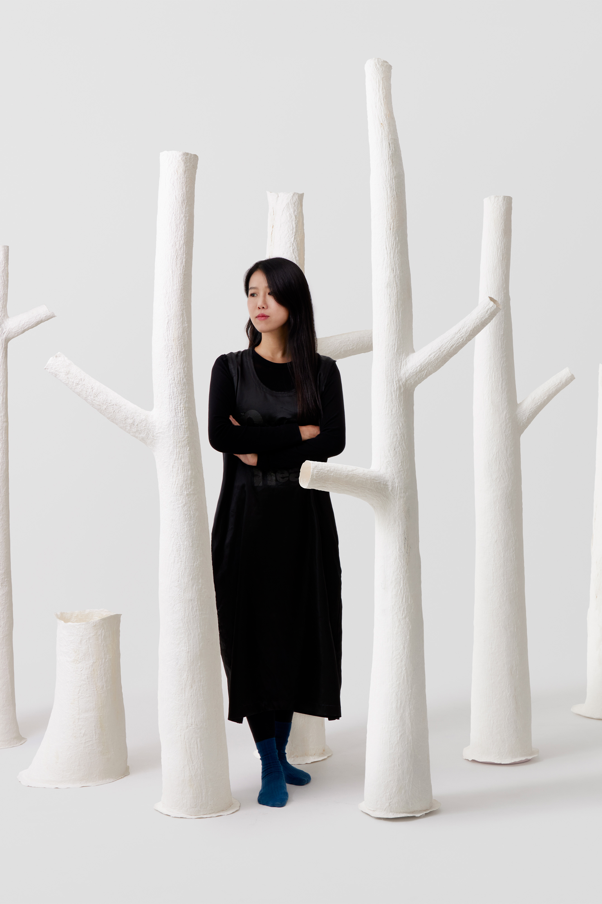 Hyun Joo Kim travaille le Hanji (papier de mûrier traditionnel coréen), pour créer des reliefs en papier 3D, des sculptures en fibre de mûrier et des objets artisanaux en papier. La créatrice a appris à fabriquer ce matériau dans la ville de JeonJu - lieu célèbre pour sa fabrication en Corée du Sud, et en a développé sa propre technique. Sa série de sculptures en papier est née de l'expérimentation, avec la création d'objets sculpturaux en trois dimensions travaillant uniquement avec du Dak - la fibre de mûrier - le matériau de base du Hanji, sans utiliser d'autres matériaux. Elle cherche à développer de nouvelles textures et surfaces, et peut-être une nouvelle sensibilité esthétique. La créatrice a collaboré avec de nombreuses marques internationales dont Hermès, Polène, Calvin Klein. Ses œuvres ont été collectionnées par Hermès, le musée d'art Leeum Samsung, le musée Falling Water, Three Waterline Square, Lexus et des collectionneurs privés.