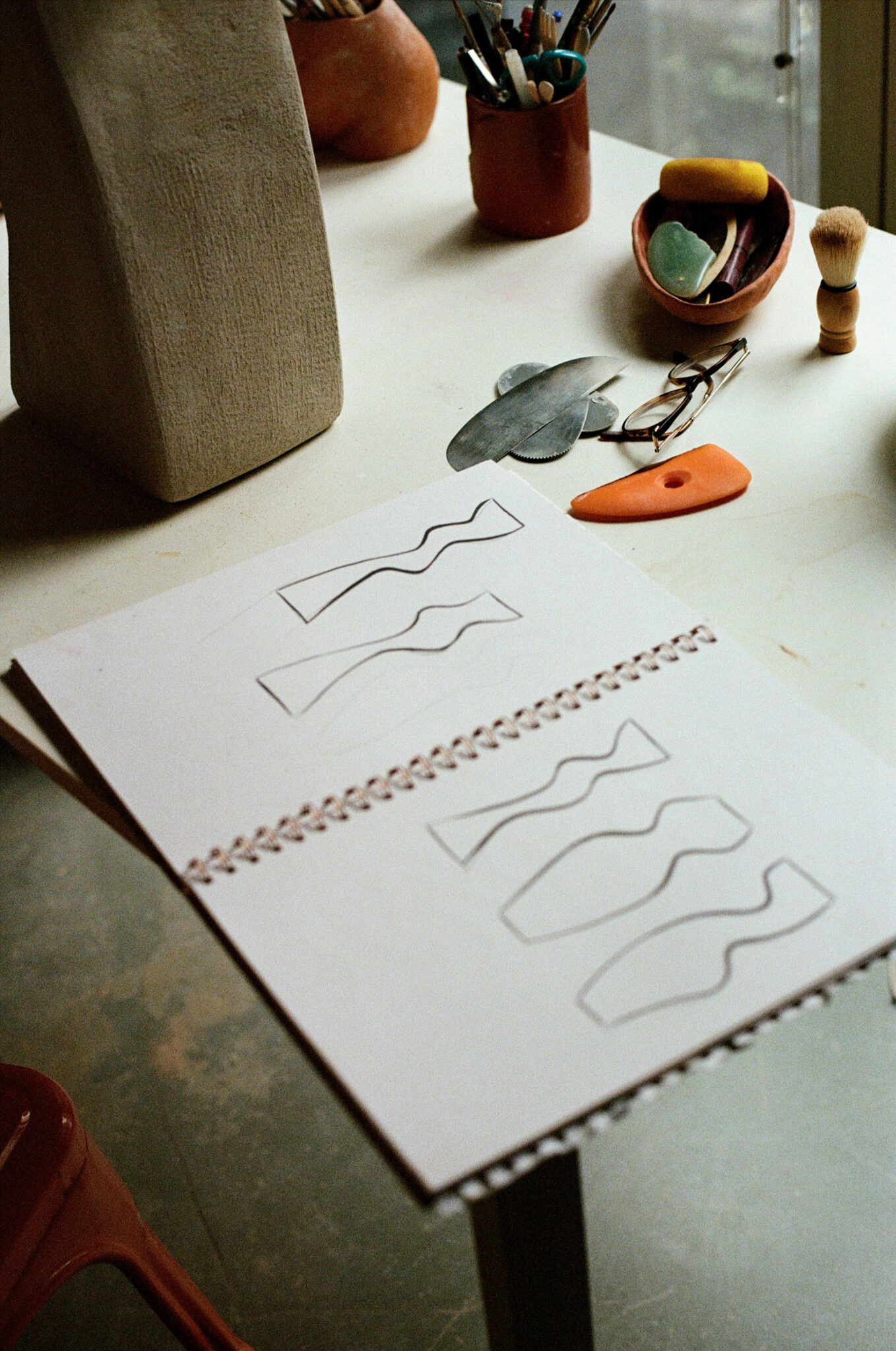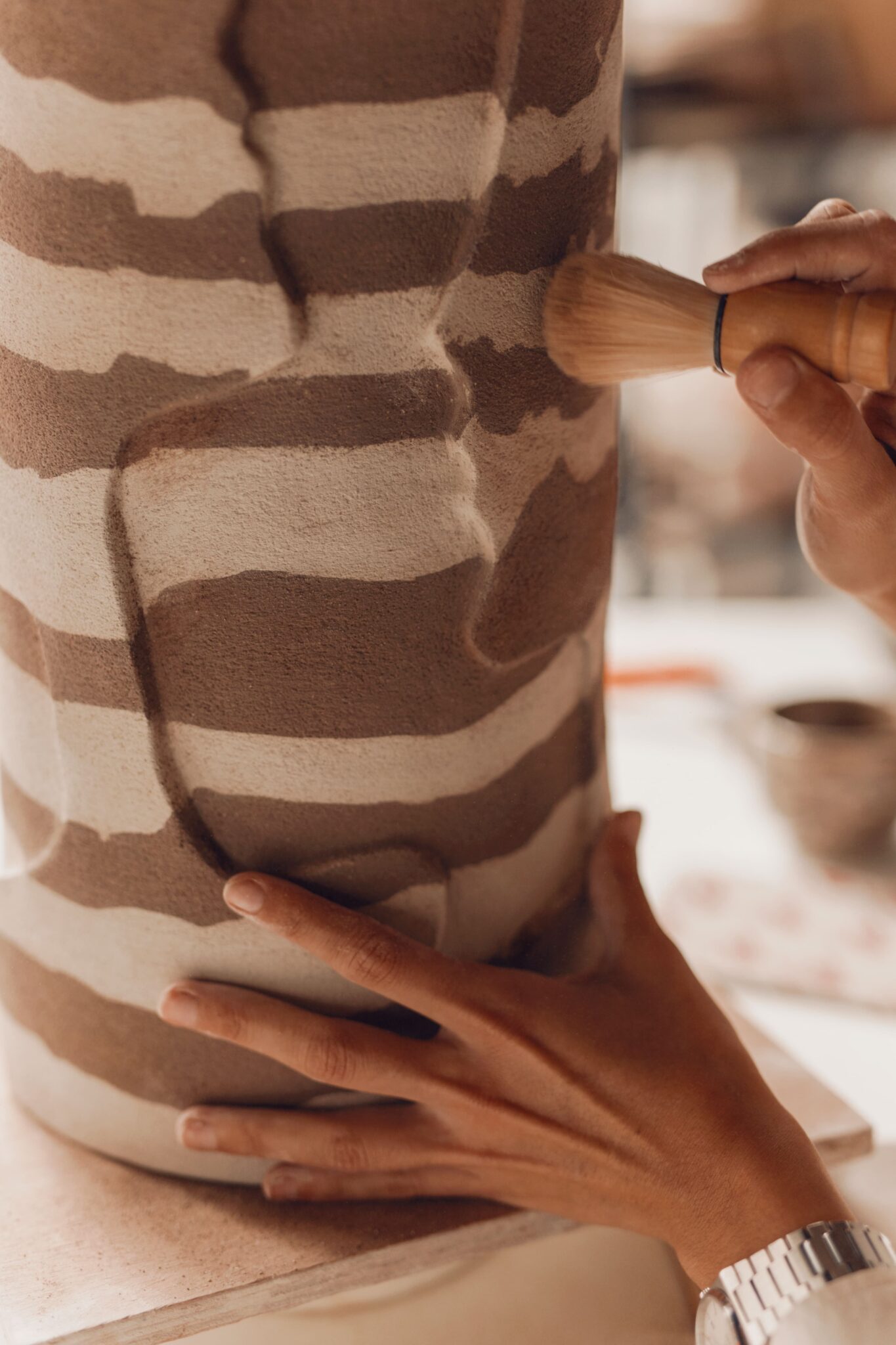 Plongez dans l’univers sensible et charnel de Thalia Dalecky, céramiste installée à Paris. Ses sculptures en terre, souvent pensées pour être utiles – luminaires, miroirs, tabourets ou tables – explorent les formes du corps, les visages allongés jusqu’à l’abstraction, et surtout les mains, ses outils de création, auxquels elle rend un hommage récurrent. Travaillée comme une chair vivante, l’argile devient sous ses doigts un territoire d’émotions, de textures et d’expérimentations. Entre sensualité du geste et quête de fonctionnalité, son travail mêle artisanat d’art et poésie du quotidien.